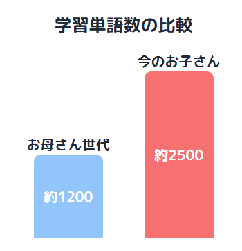 中学で新たに習う単語と合わせると合計約2500語。お母さん世代の2倍以上です!